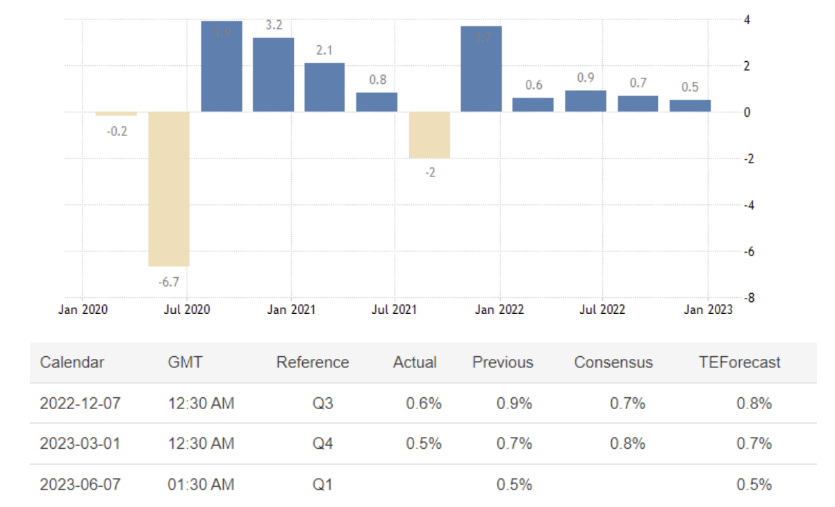 これは 5 四半期連続の経済成長であったが、家計消費の伸びが過去 5 四半期で最も低く (0.3%、第 3 四半期は 1.0%)、激しいコスト圧力と金利上昇の中で、連続した中で最も軟調なペースでした。