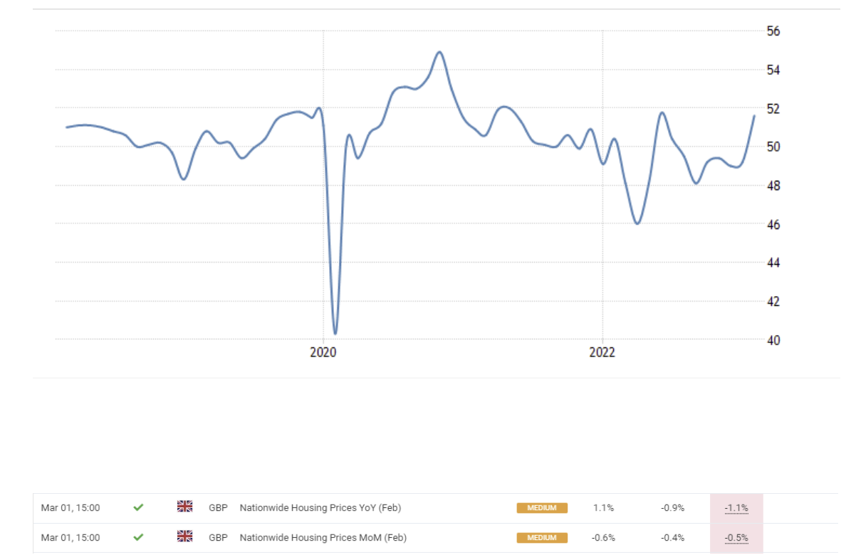 Mar 01 16:00 JPT; 07:00 GMT, 2023 年 2 月の英国 Nationwide 住宅価格指数は前年同月比 1.1% 下落し、2020 年 6 月以来の年間下落率となり、2012 年 11 月以来の大きな下げ幅となりました。