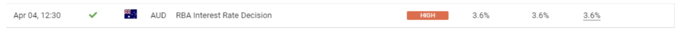 April 04 13:30 JPT; 04:30 GMT, オーストラリア準備銀行は4 月の会合で、予想通り現金給付金利を3.6%に据え置き、2022 年4 月に利上げを開始して以来、中央銀行の利上げサイクルに初めて歯止めがかかったことになります。