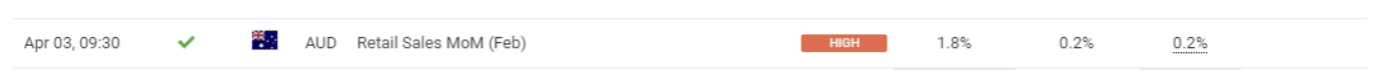 April 03 10:30 JPT; 01:30 GMT, 2023 年2 月のオーストラリアの小売売上高は、前月比0.2%増の351 億4000 万豪ドルとなり、速報値から修正はされませんでした。