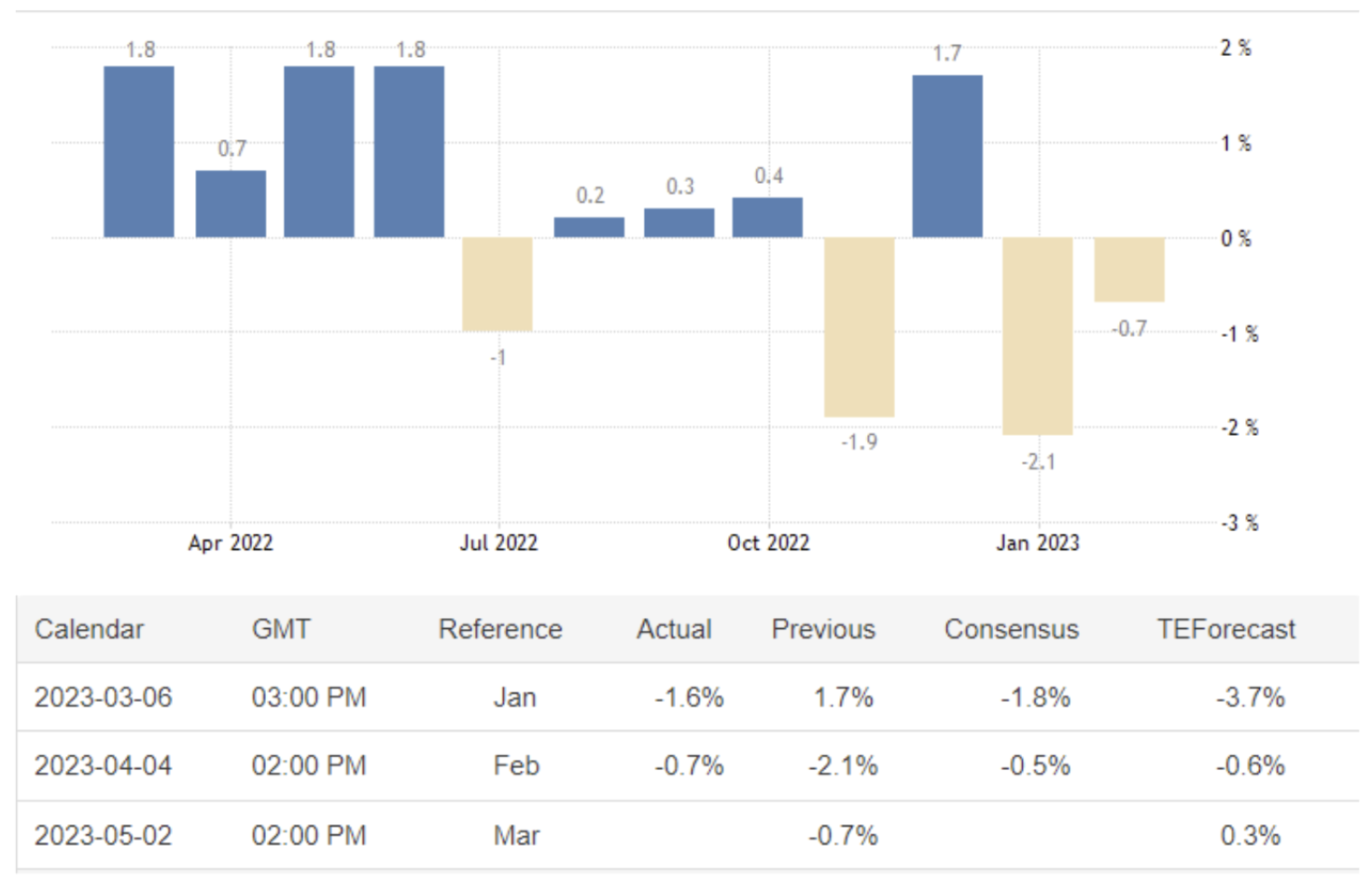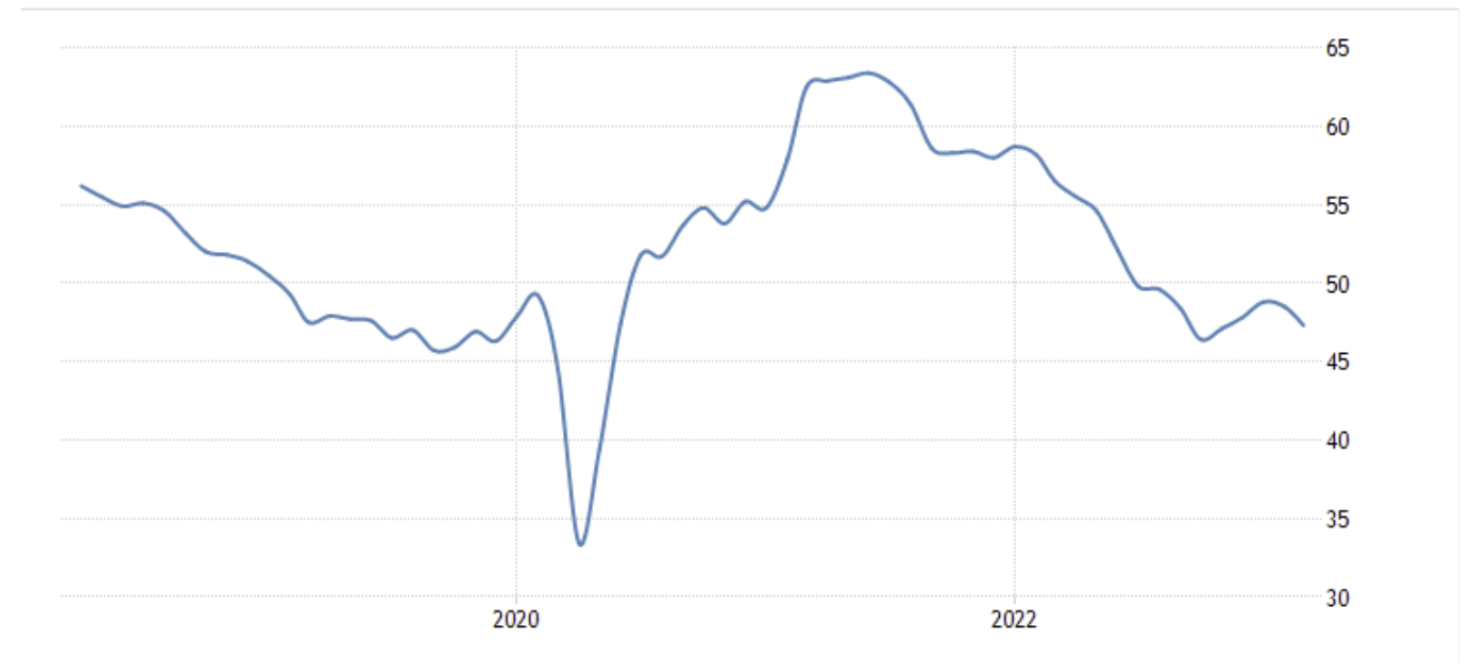 April 05 17:00 JPT; 08:00 GMT, 2023 年3 月のS&P グローバル・ユーロ圏製造業PMI は47.3となり、事前予想の47.1 からほとんど変化せず、前月の48.5 から低下した。工場からの受注が11 ヵ月連続で減少し、サプライヤーの納期が調査史上最短となったこと
