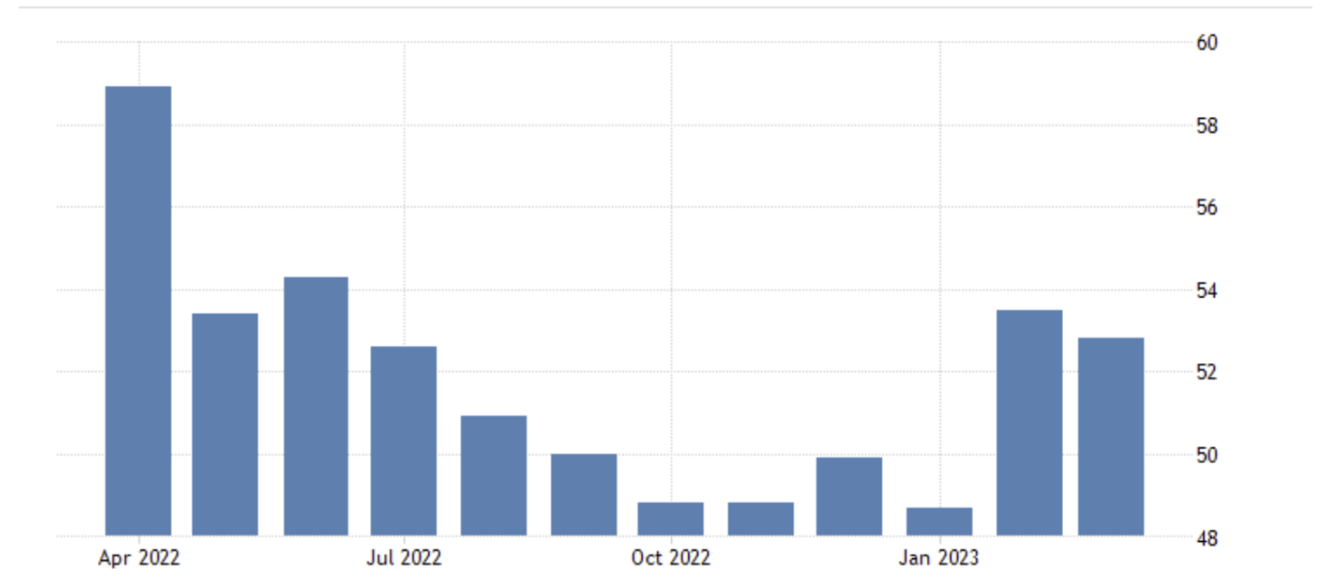 April 05 17:30 JPT; 08:30 GMT, 2023 年3 月のS&P グローバル/CIPS 英国サービス業PMI は、2 月の53.5 から52.8 に低下し、市場予想の53 を下回ったことが、速報値で示されました。