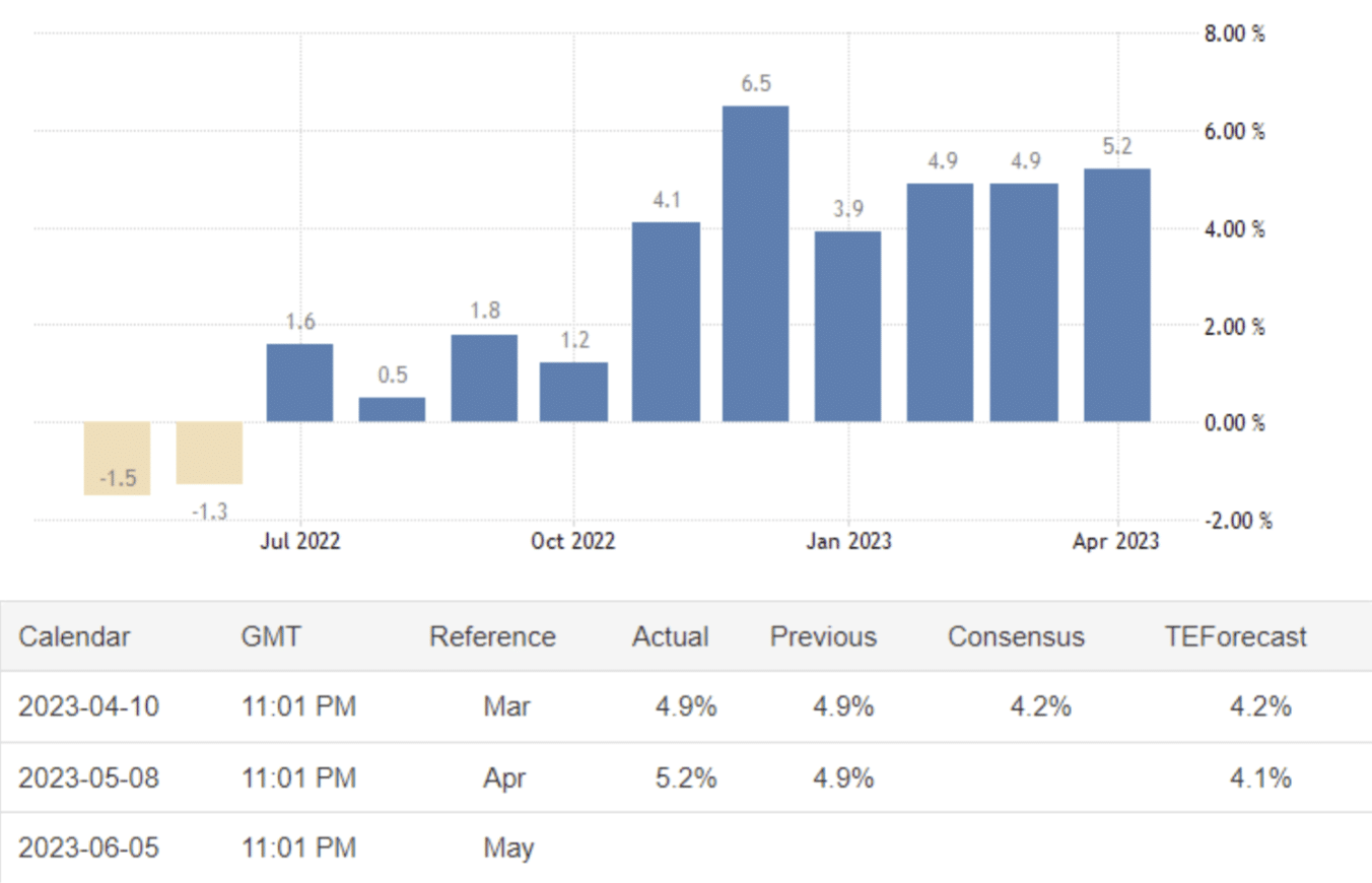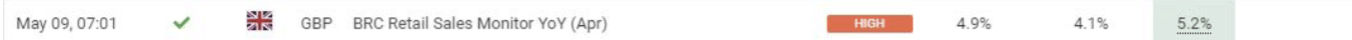 May 09 08:01 JPT; 23:01 GMT, 英国の2023年4月の小売売上高は対前年比5.2%増となり、3月の4.9%増からわずかに加速したが、高インフレにより消費者が得るものは少なかった。