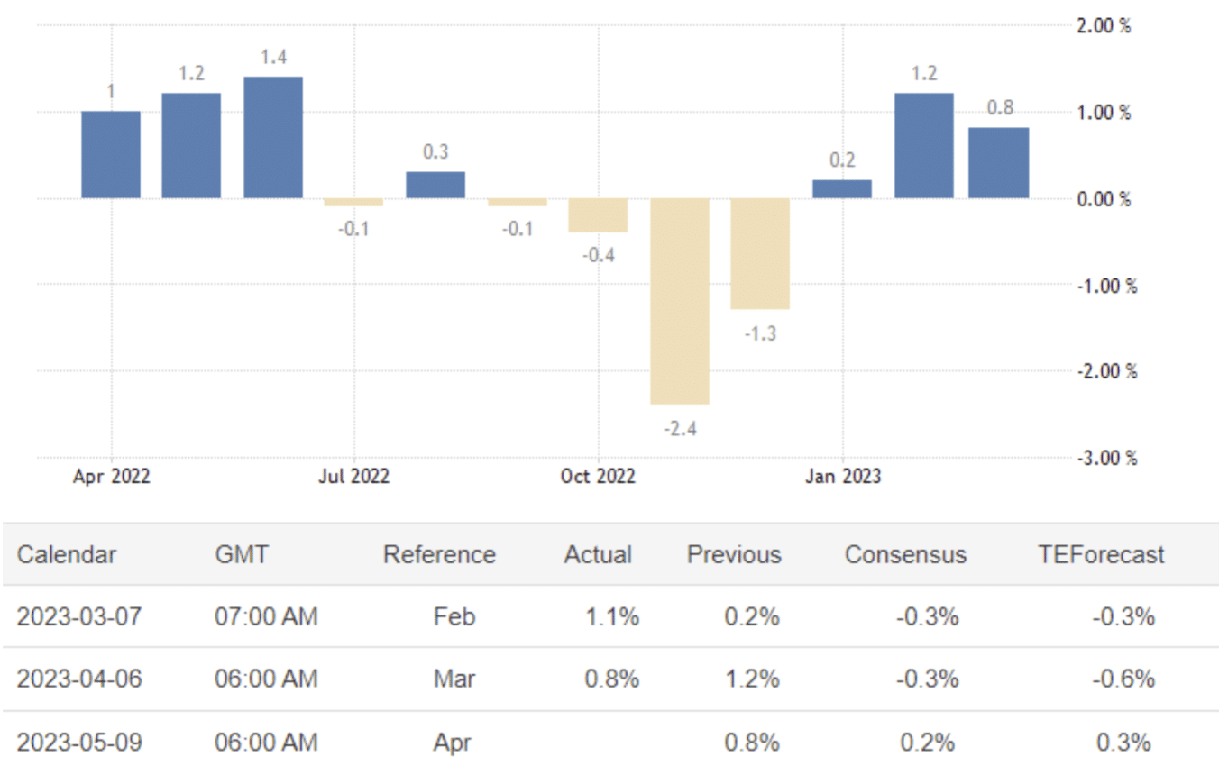 May 09 15:00 JPT; 06:00 GMT, ハリファックス住宅価格指数は、2023年3月に前月比0.8%上昇し、2月の1.2%上昇の改定値に続き、住宅ローン金利の緩和により2023年初頭の住宅市場の比較的安定を示唆しました。