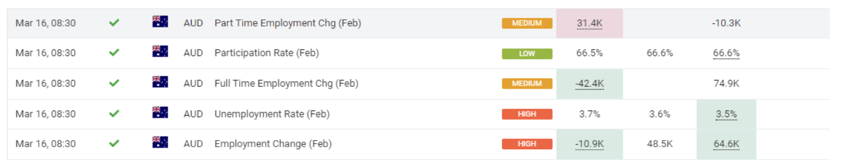Mar 16 09:30 JPT; 00:30 GMT, オーストラリアの 2023 年 2 月の季節調整済み失業率は、失業者数が 16,500 人減の507,500 人となり、1 月の 8 ヵ月ぶりの高水準となった 3.7%から 3.5% に低下、市場予想の3.6%を下回りました。