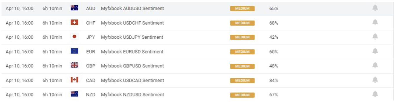 April 07 17:00 JPT; 08:00 GMT, Myfxbookの通貨センチメント指標は、トレーダーにとって非常に重要なツールです。このインディケータは、それぞれの通貨の買い手と売り手のパーセンテージを表示します。