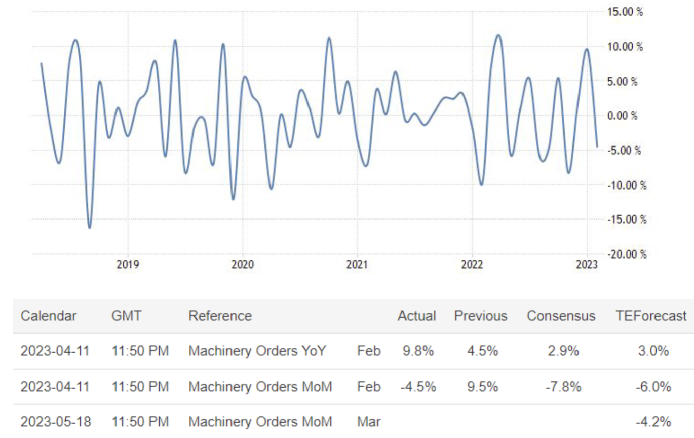 April 12 08:50 JPT; 23:50 GMT, 2023 年2 月の日本の船舶・電力向けを除くコア機械受注は前月比4.5%減となり、1 月の9.5%増から反転したものの、市場予想の7.8%減を上回った。