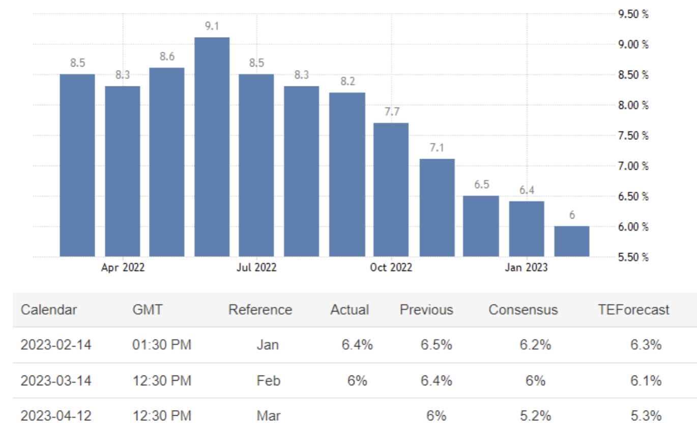 インフレ率は6 月に8.1%のピークを迎えて以来、1 月には5.9%に減速し、同行は引き続き、年央にはインフレ率が3%に低下すると予想しています。