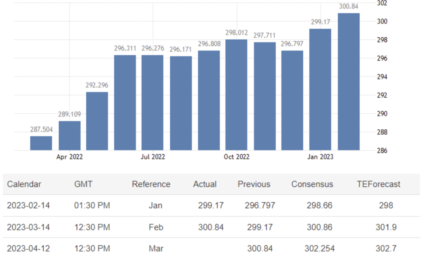 April 12 17:00 JPT; 08:00 GMT, 2023 年2 月の米国の消費者物価指数は前年同月比6.0%上昇の300.84 ポイントとなり、市場コンセンサスの300.86 ポイントとほぼ一致した。