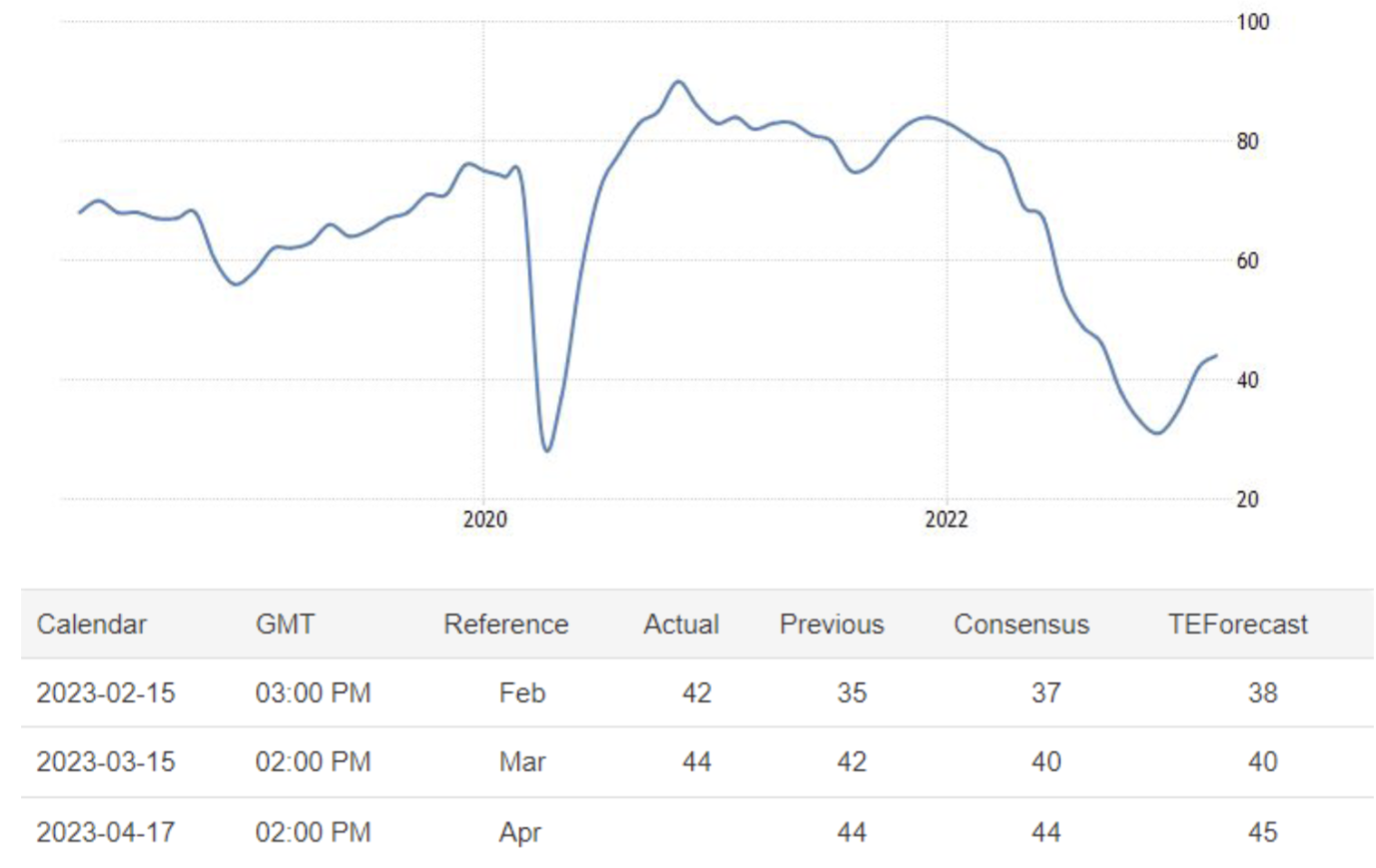 April 17 23:00 JPT; 14:00 GMT, 2023 年3 月の米国のNAHB/ウェルズ・ファーゴ住宅市場指数は3 カ月ぶりに上昇し44 となり、2022 年9 月以来の最高値を更新、市場予想の40 を上回りました。