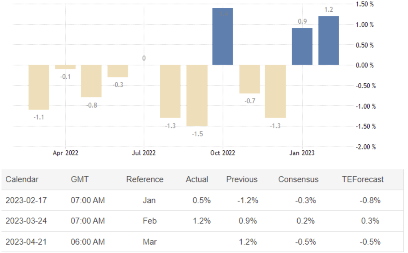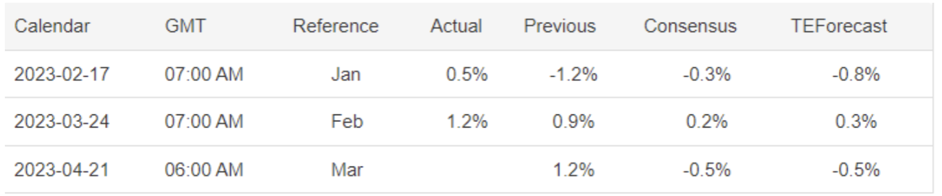 April 21 15:00 JPT; 06:00 GMT, 2023年2月の英国の小売売上高は、1月の0.9%増の上方修正に続き、0.2%増の予測に対し、予想外に前月比1.2%の急増となった。