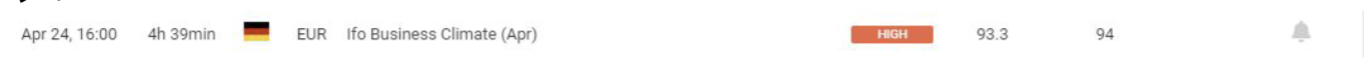 April 24 17:00 JPT; 08:00 GMT, 2023 年3 月のドイツのIfo 景況指数は93.3 に上昇し、前月の91.1 から2022 年2 月以来の高水準となり、市場予想の91 を上回りました。