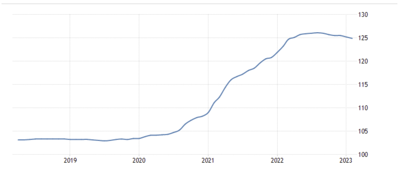 April 24 21:30 JPT; 12:30 GMT, カナダの住宅指数は、2023 年1 月の125.20 ポイントから2 月には124.90 ポイントに減少した。