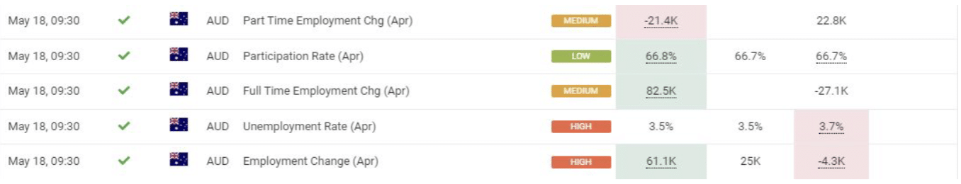 May 18 10:30 JPT; 01:30 GMT, オーストラリアの2023年4月の季節調整済み失業率は、市場予測や3月、2月の50年ぶりの低水準に近い3.5%から、予想に反して3.7%となりました。