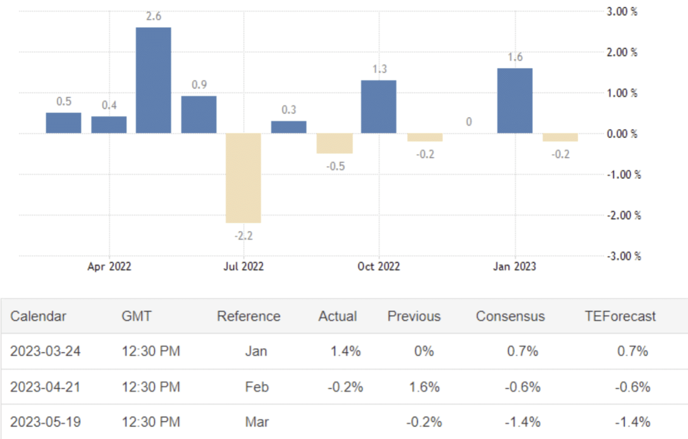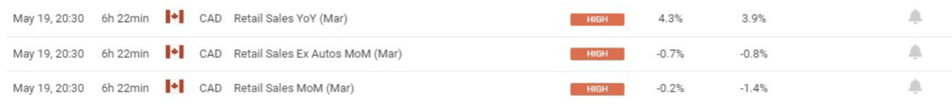 May 19 21:30 JPT; 12:30 GMT, カナダの2023年3月の小売売上高は、事前予想では前月比1.4%減となる見込みです。