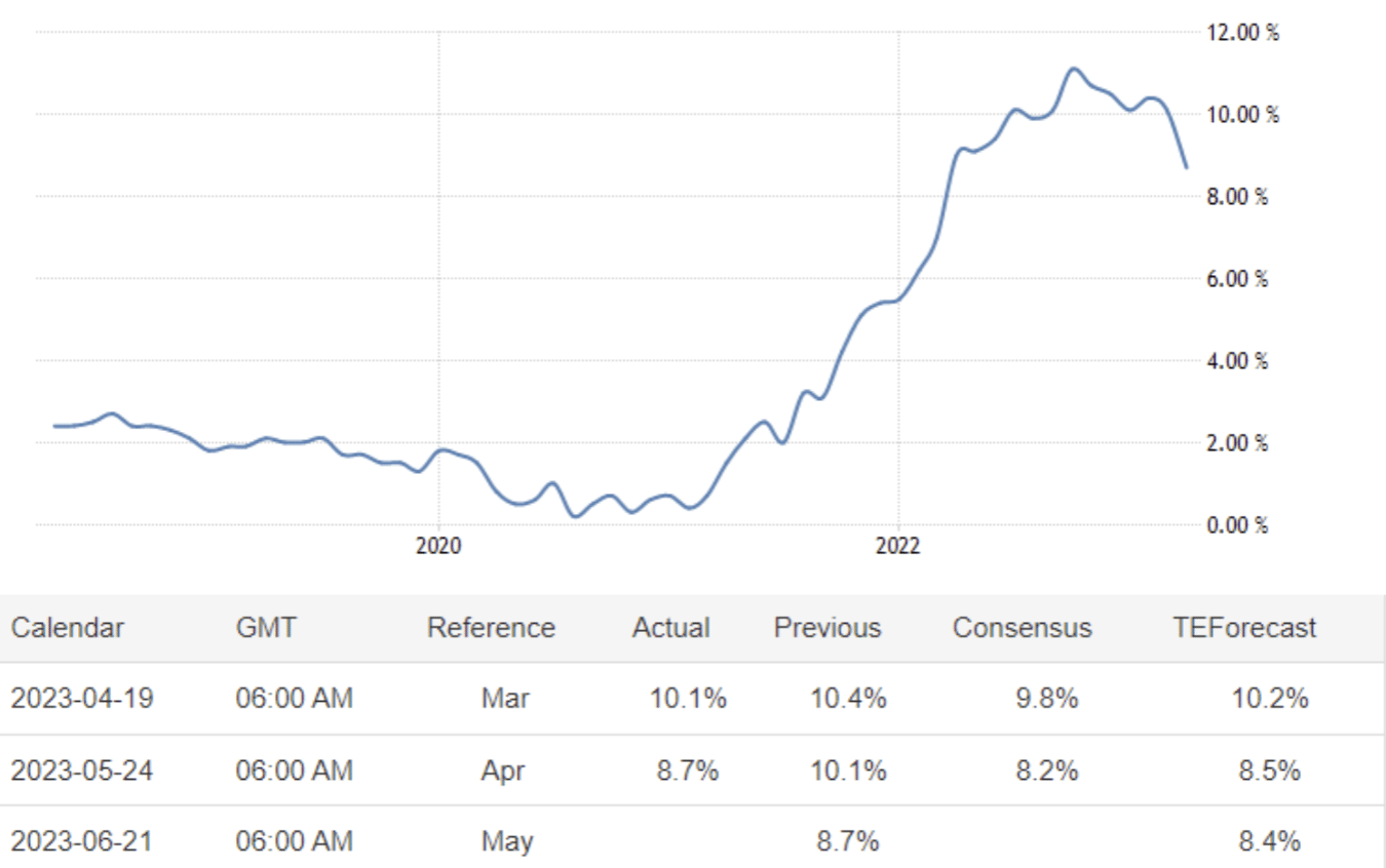 それでもインフレ率は市場予想の8.2%を上回り、イングランド銀行の目標値である2.0%を大きく上回る水準を維持しました。