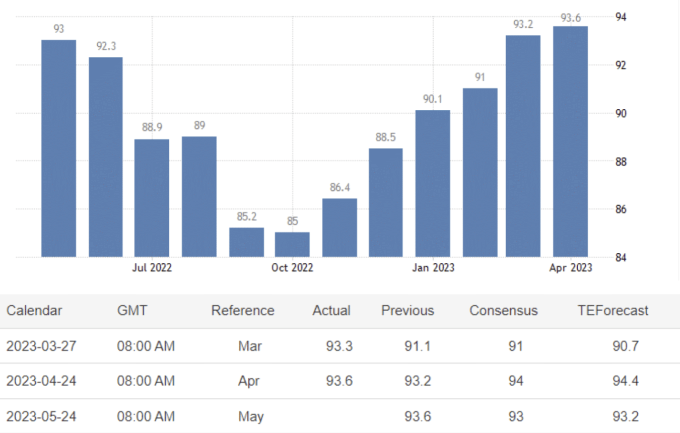 May 24 17:00 JPT; 08:00 GMT, 2023 年4 月のドイツのIfo 景況感指数は前月比0.4 ポイント増の93.6 となり、6 期連続の上昇、昨年2 月以来の高水準となりました。