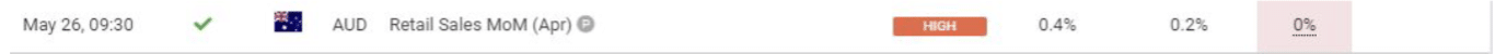 May 26 10:30 JPT; 01:30 GMT, オーストラリアの小売売上高は、3月に0.4%増加した後、2023年4月には前月比横ばいの353億豪ドルとなったことが、速報値で明らかになりました。これは、気温が低く雨の多い天候に対応した冬物衣料への支出の増加が、生活費圧迫や金利上昇に対応した裁量財への支出の減少を相殺したことによるもので、前3ヵ月間の増加に続く結果となりました。