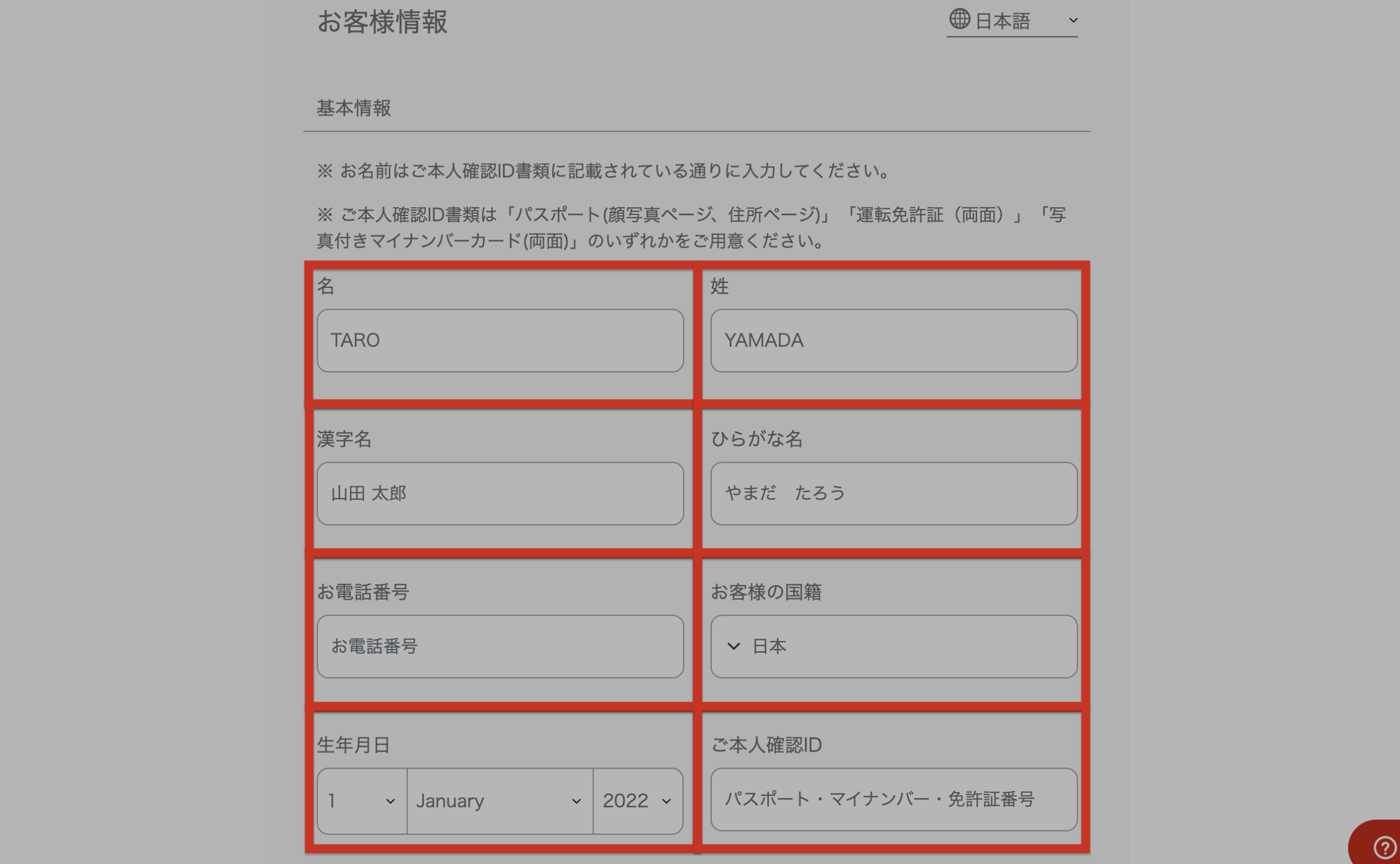 また入力して頂いた基本情報は、提出する本人確認書類と一致していない場合には、即日口座開設をする事ができないためご注意下さい。