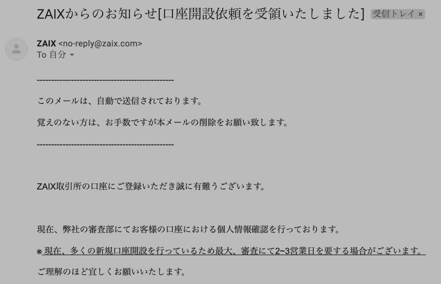 ZAIXから上記のEメールが届くと、総合口座の登録依頼は完了です。