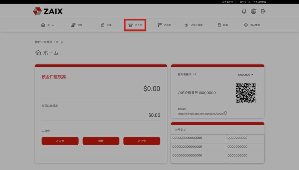 入金の反映時間の詳細につきましては入出金サービスをご覧ください