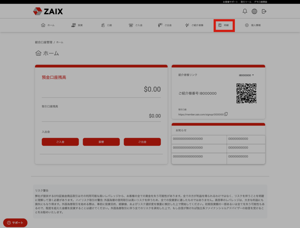 預金口座明細の取得は、お客様の総合口座にログインしていただいた後に