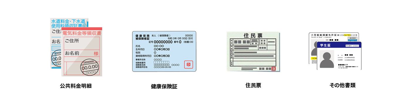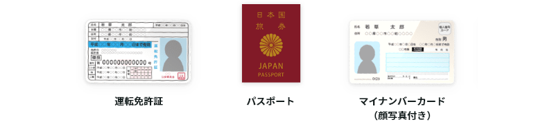 取引担当者のご本人様確認書類を1点、住所確認書類を1点ご用意ください。