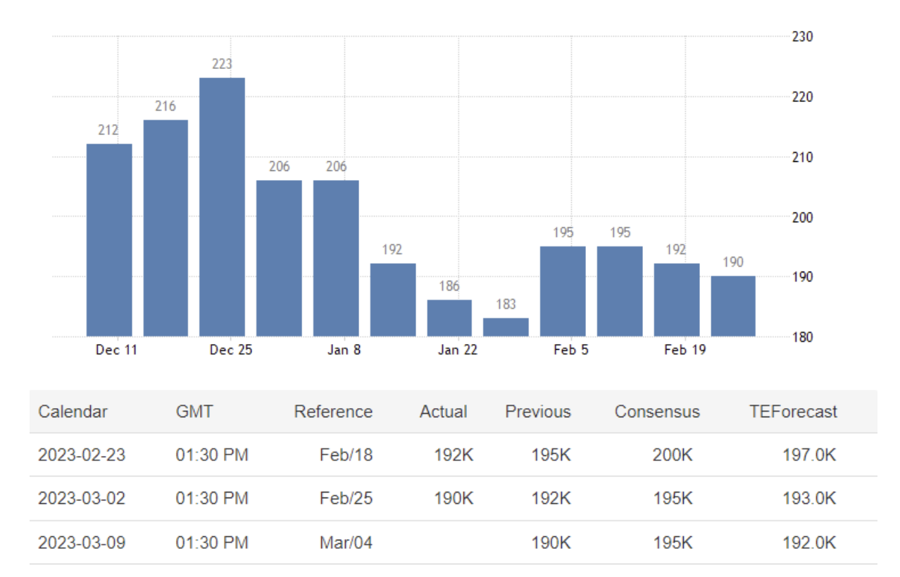 Mar 09 22:30 JPT; 13:30 GMT, 2 月 25 日に終わる週の米国人失業者数は前週比 2,000 人減の 190,000 人となり、市場予想の 195,000 人を下回りました。