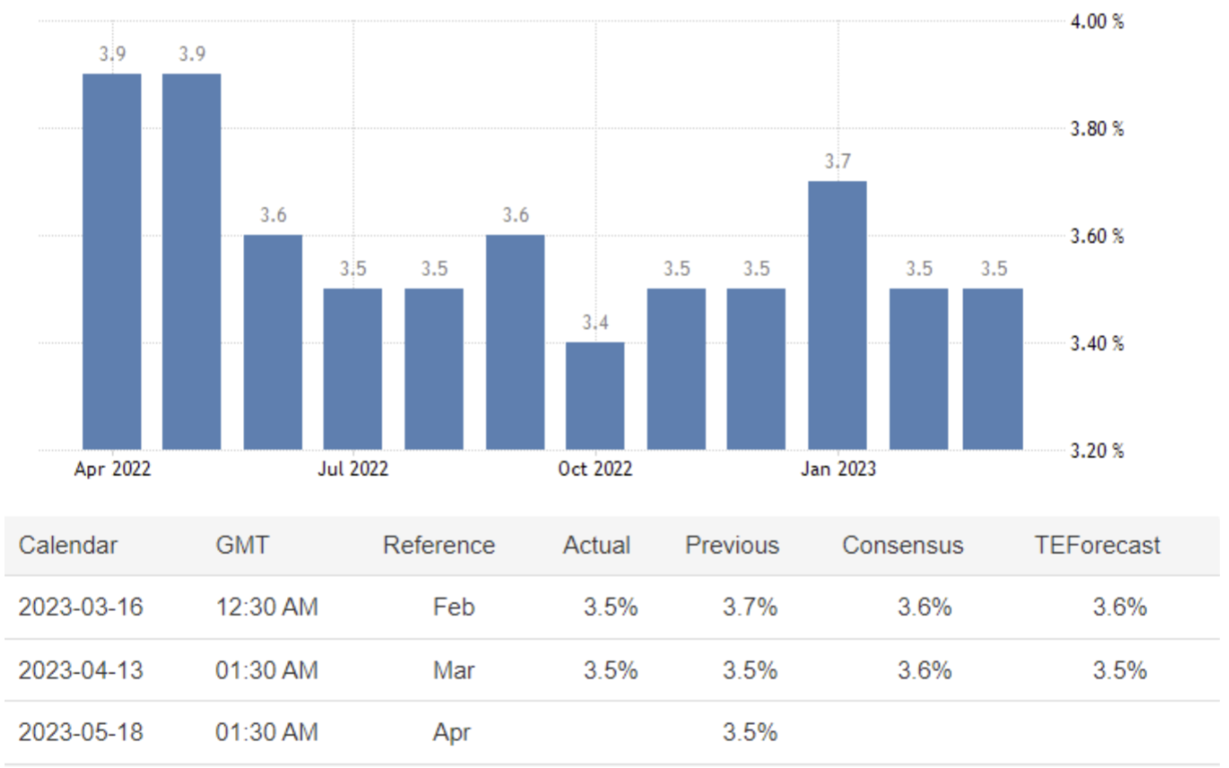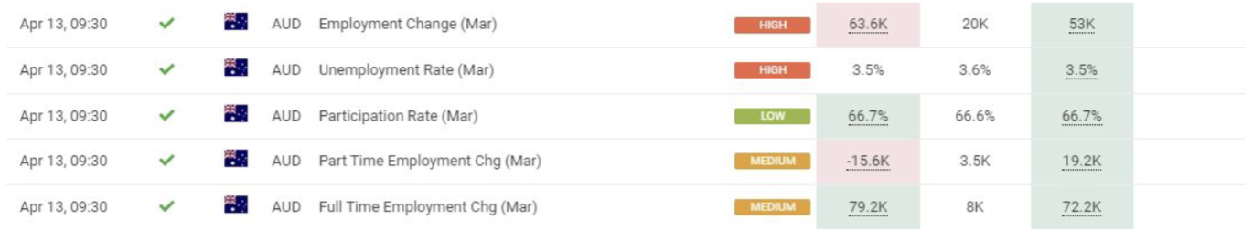 April 13 10:30 JPT; 01:30 GMT, オーストラリアの2023年3月の季節調整済み失業率は3.5%となり、50年ぶりの低水準となった2月から変化はなかったが、市場予想の3.6%を下回った。